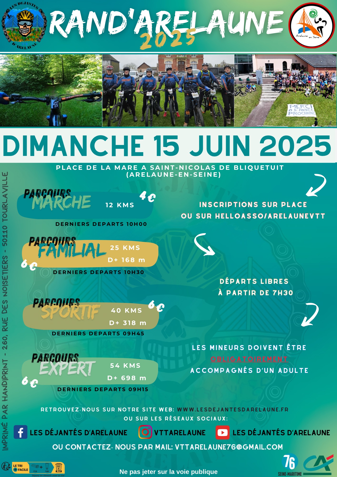 - Parcours Familial : Distance de 25 km environ, dernier départ à 10h30.