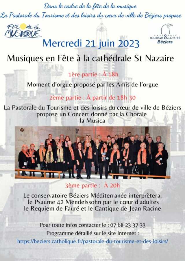 Concert de la Chorale La Musica organisé par la Pastorale du Tourisme et des loisirs du cœur de ville de Béziers