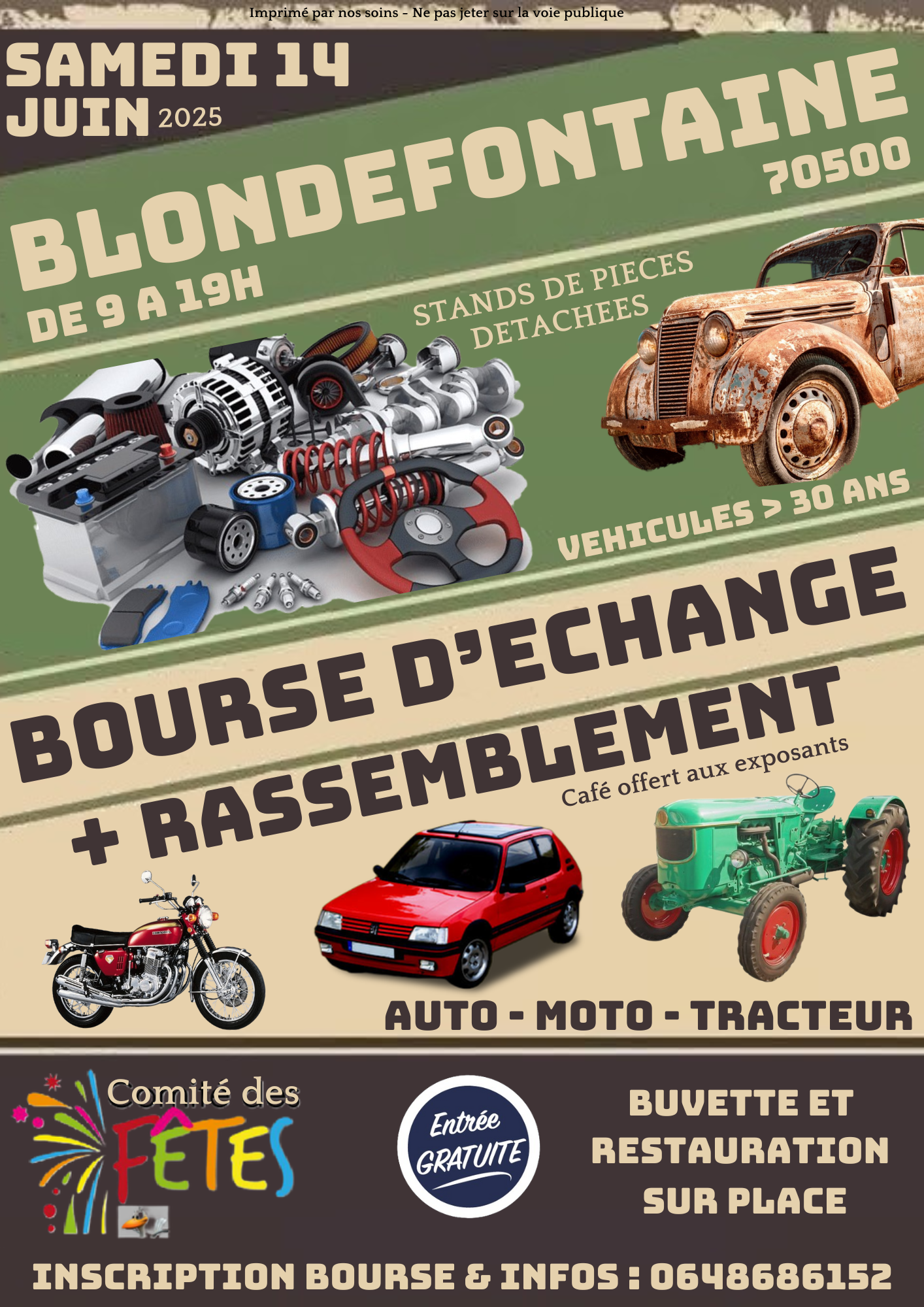 Bourse d'échange pièces. Rassemblement Auto-Moto-Tracteur. Véhicules anciens (plus de 30 ans)