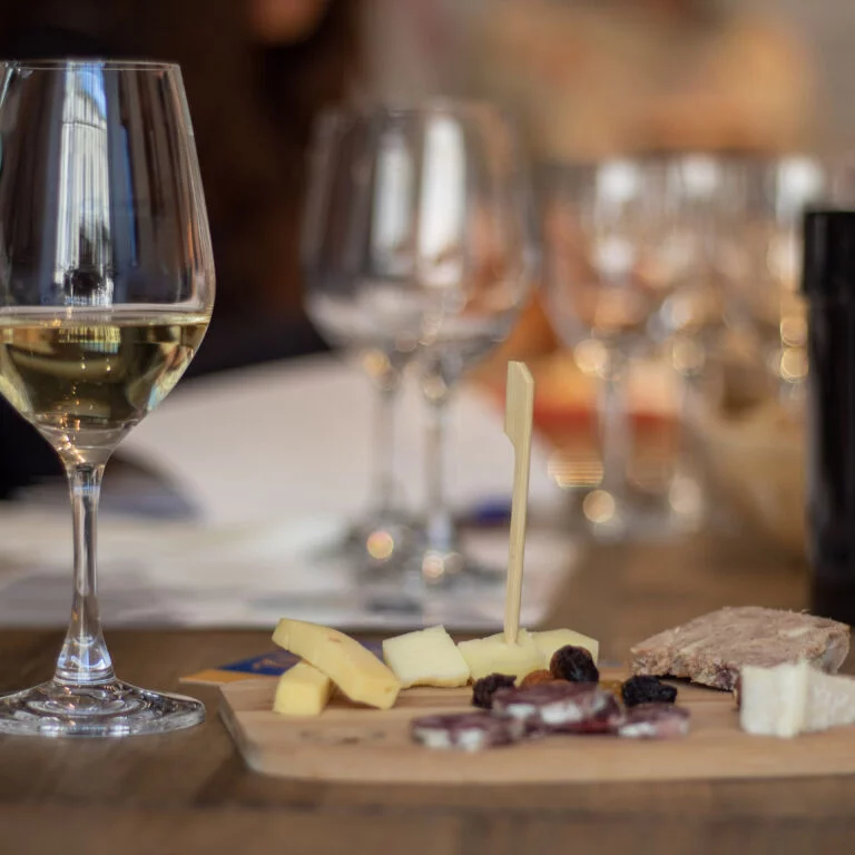 Compris : Un guide passionné de vin, 1 verre de vin blanc, 2 verres de vins rouges, Planche de fromages et charcuteries locaux, Baguette, Brochures informatives, Eau à disposition