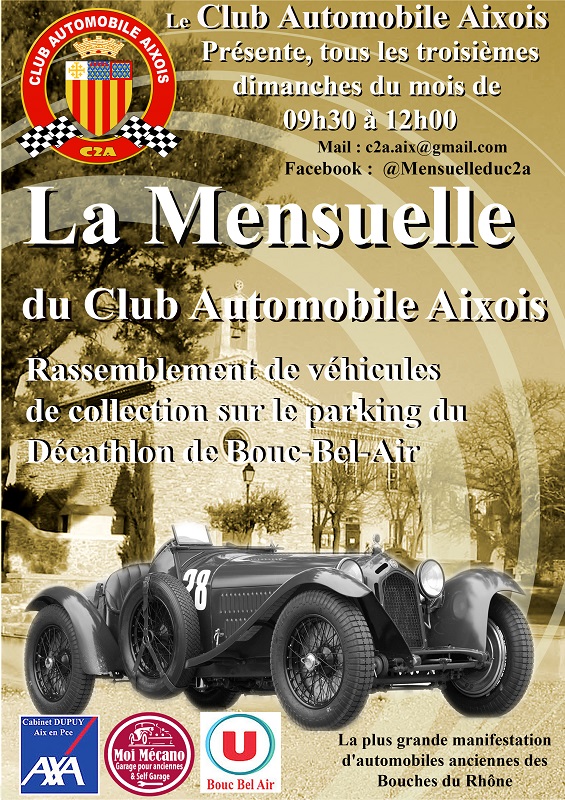 Depuis des années, chaque 3e dimanche du mois, la Mensuelle du Club Automobile Aixois réunit à Aix-en-Provence 250 à 300 véhicules anciens, youngtimers et d’exception, faisant de ce rassemblement le plus fréquenté des Bouches-du-Rhône.
