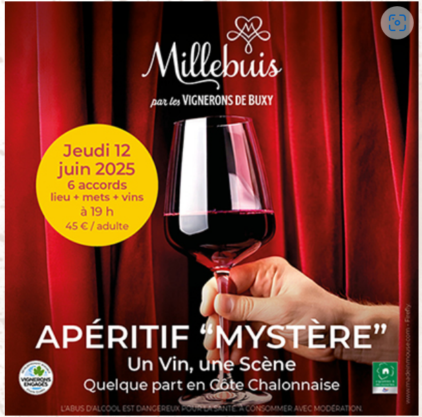 Aller sur le site : https://www.vigneronsdebuxy.fr/actualites/aperitif-mystere-un-vin-une-scene-2025/
