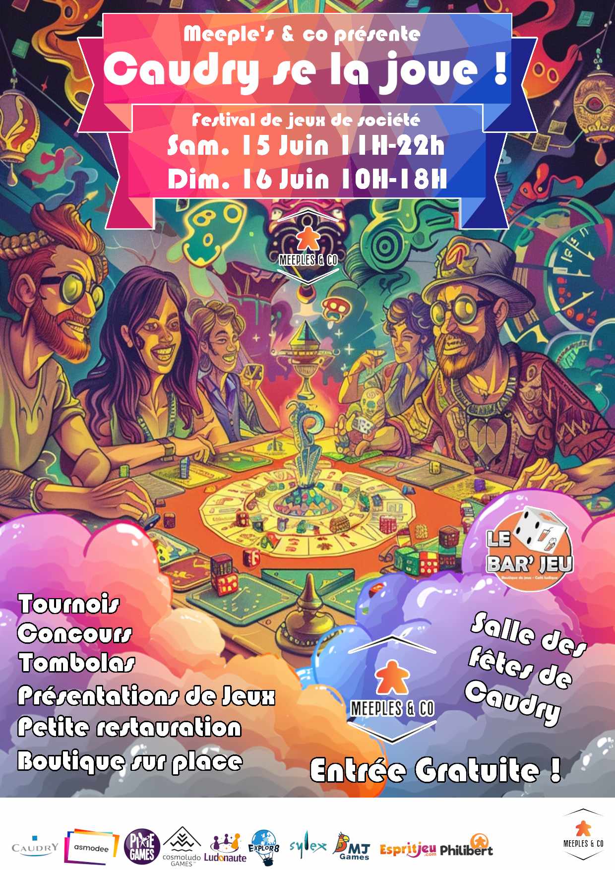 Meeples&Co vous invite à son festival "Caudry se la joue" qui aura lieu à la salle des fêtes de Caudry (2 rue Fernand Beauvillain 59540 Caudry) le week-end des 15 et 16 juin 2024.