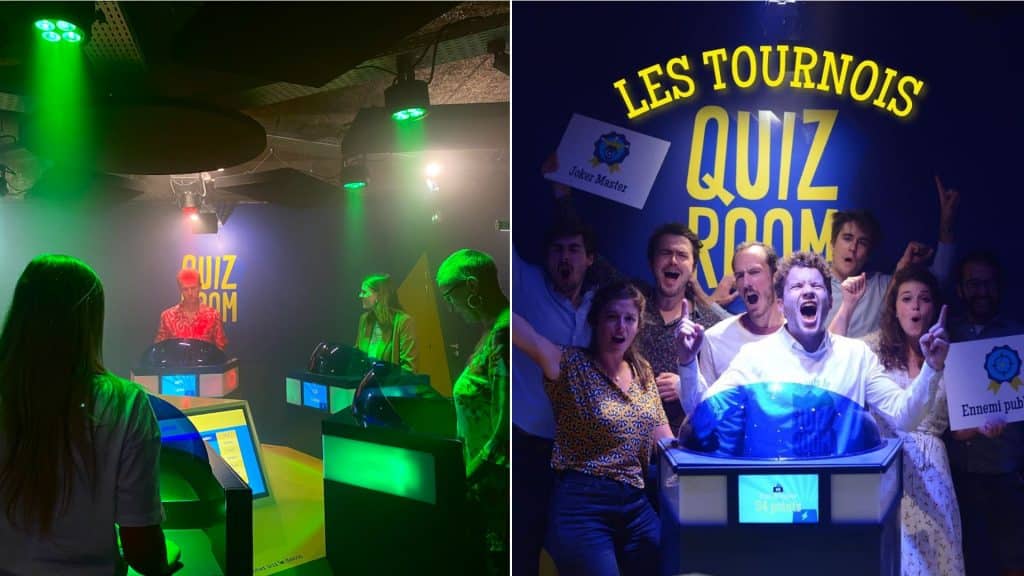 Quizz Room, c’est le 1er quizz immersif de Paris ! Sur un plateau, comme à la télé, venez affronter vos amis et prouver que le meilleur : c’est vous ! Avec Quizz Room, vous n’êtes plus spectateur mais joueur. Dans une ambiance à mi-chemin entre Une Famille en Or ou Question pour un Champion, une voix off en guise d’animateur viendra arbitrer le jeu.