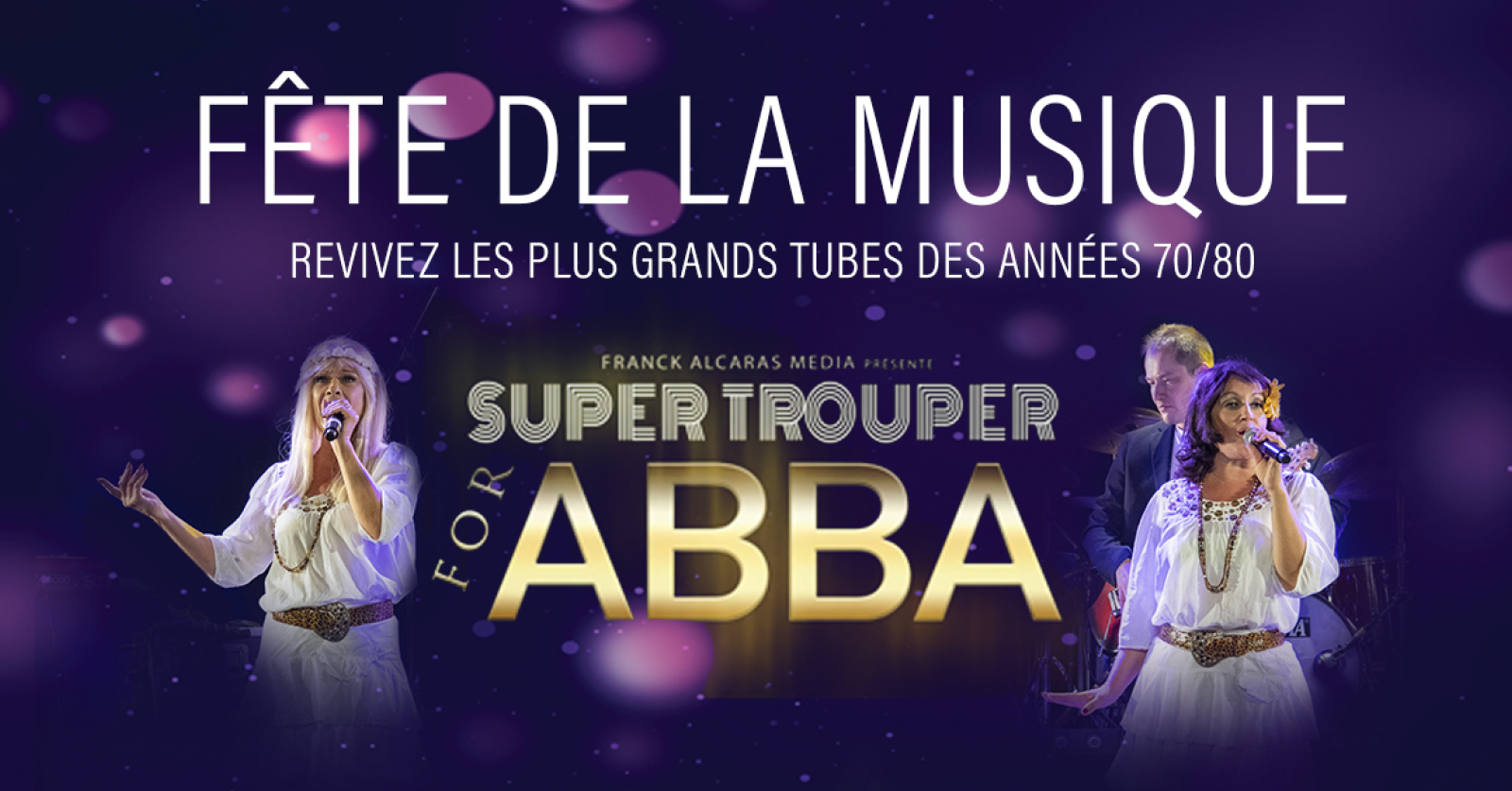 À partir de 21h, place ensuite à un concert enflammé sur la grande scène du parc du Souvenir – Émile Fouchard avec un tribute à ABBA proposé par les 8 artistes du groupe Super trouper for ABBA, créé en 2008 par Fenella Masse, ex Coco girls, et son mari Philippe, ex-guitariste des Forbans.