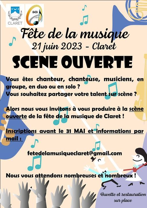 SCENE OUVERTE : l'école de musique des Verriers en collaboration avec la commune de Claret organise le mercredi 21 juin 2023 la fête de la musique !