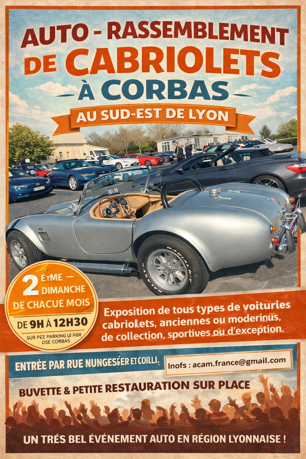 Auto – Rassemblement de Cabriolets à Corbas au sud-est de Lyon.
