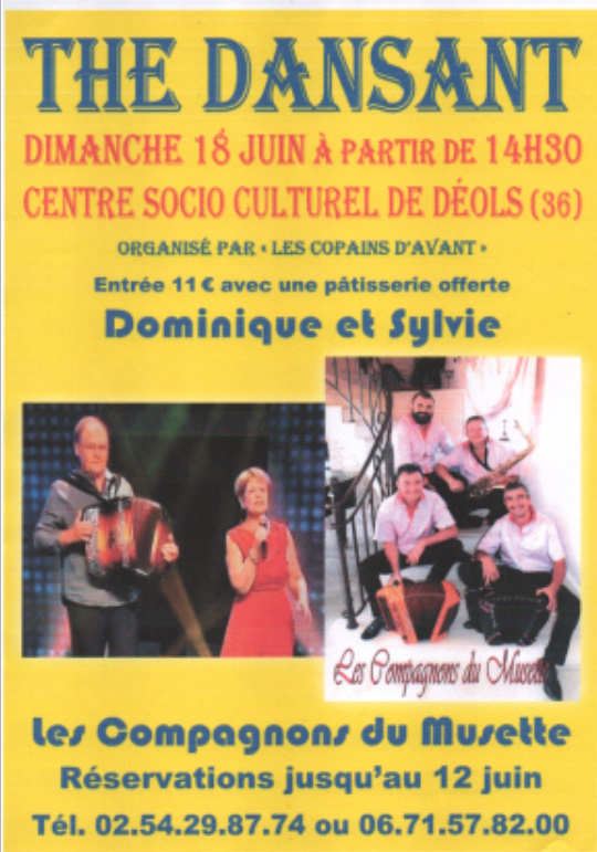 COUCOU LES DANSEURS VENEZ NOMBREUX A NOTRE THE DANSANT LE 18 JUIN A DEOLS,
