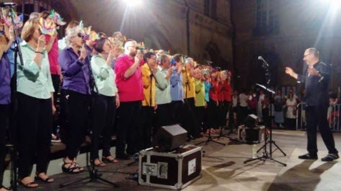 La cour de Flore, dans le palais des Ducs de Bourgogne, permet, grâce à ses hauts murs, de recevoir des groupes qui chantent !