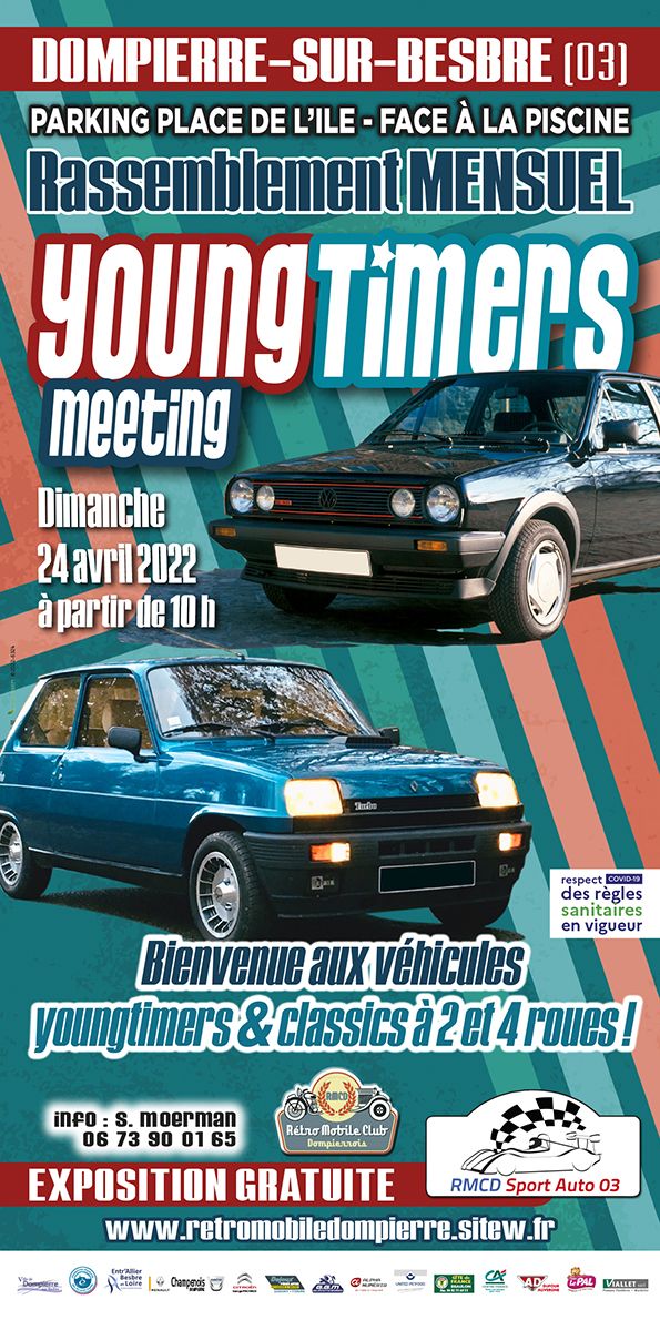GRATUIT Pour rappel, les prochains YOUNGTIMERS MEETING 2022 auront lieu à Dompierre le 22 mai, 26 juin, 24 juillet, 25 septembre et 23 octobre.