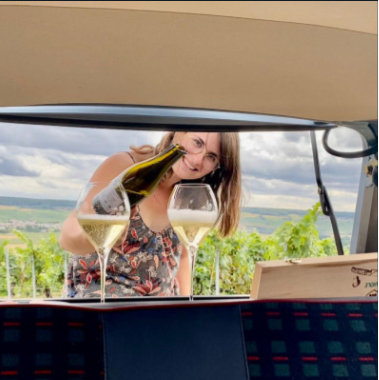 Une balade en voiture de collection à travers les vignes, une dégustation au milieu du vignoble, une initiation à l'art du sabrage et une visite de cave avec dégustation de trois cuvées.