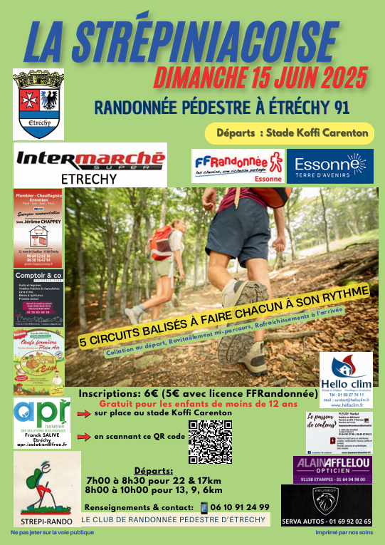 La Strépiniacoise 2025, organisée à Étréchy (91), est une randonnée pédestre accessible à tous, offrant l'opportunité de découvrir la nature tout en encourageant la pratique de la marche en plein air. Cet événement vise à susciter l'intérêt des non pratiquants et à attirer les jeunes, le tout dans une atmosphère chaleureuse et festive.
