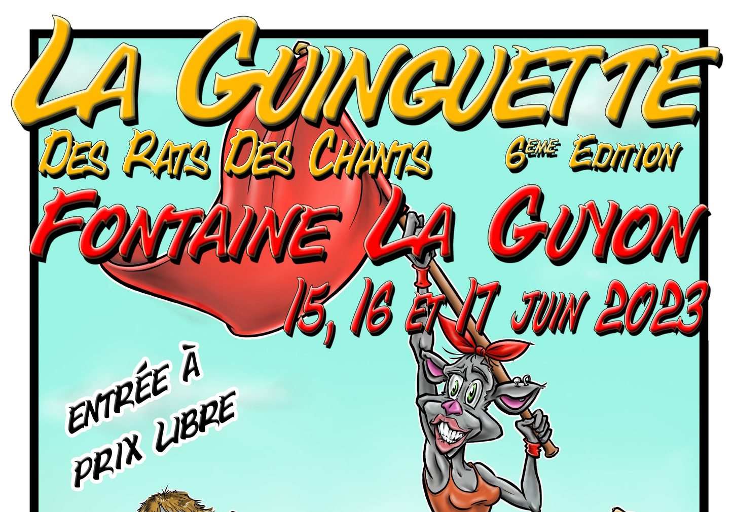L’association « Les Rats des Chants » organise dans le parc de la mairie de Fontaine la Guyon en Eure et Loir la sixième édition de sa guinguette du jeudi 15 au samedi 17 juin 2023. Un festival familial et convivial où nous proposons pendant trois jours : concerts, spectacles, arts de rue et ateliers participatifs.