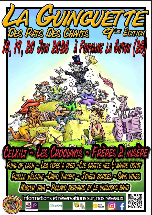 L’association « Les rats des chants » organise la 9ème édition de sa guinguette du jeudi 18 juin au samedi 20 juin 2026 dans le parc de la mairie de Fontaine-la-Guyon. Durant trois jours, des concerts, des spectacles et des représentations d’arts de rue sont proposés à des tarifs accessibles.