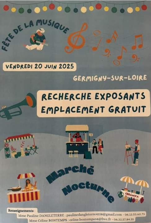 Germigny sur Loire vendredi 20 juin 2025 cherche exposants emplacement gratuit