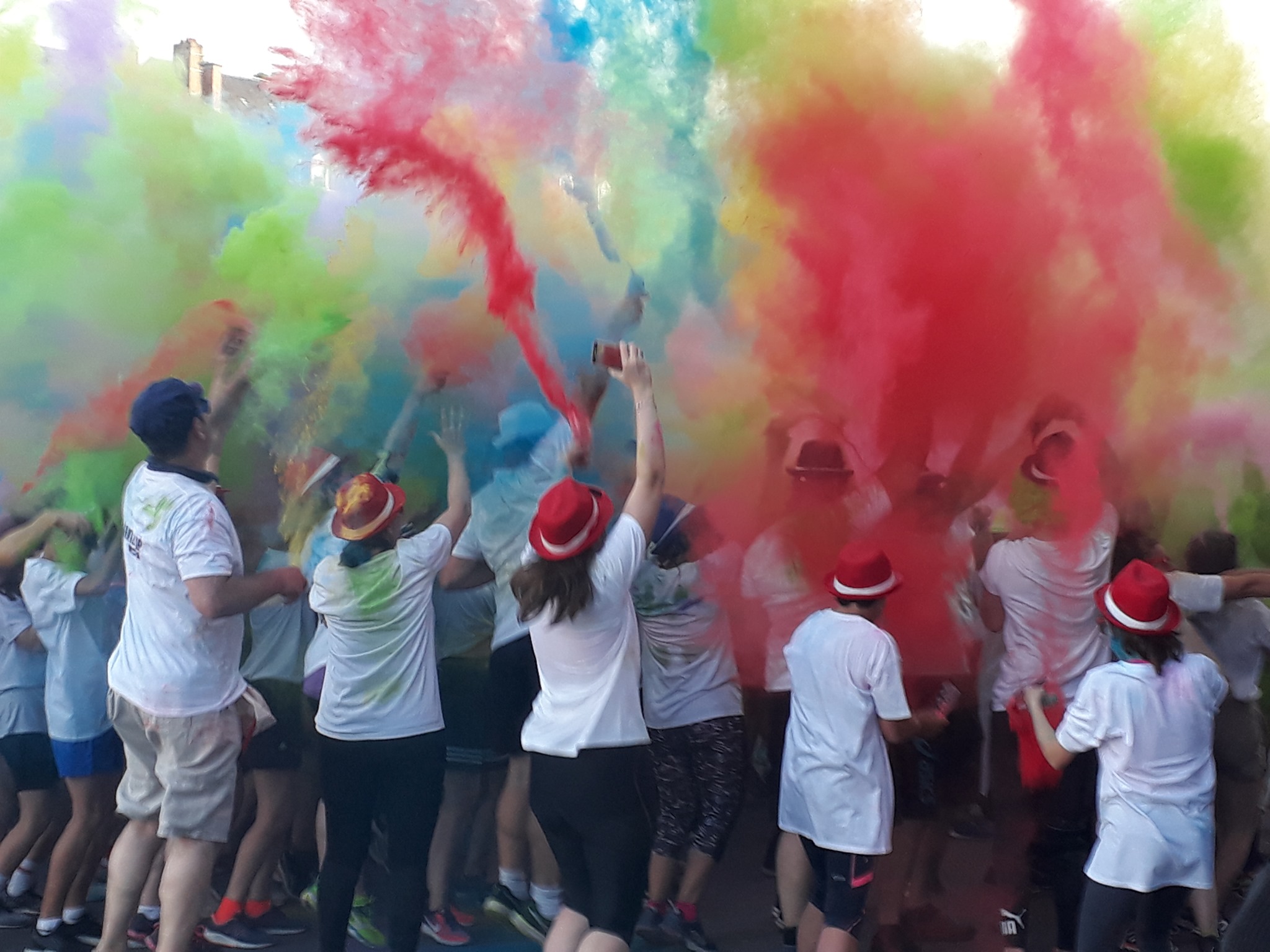 Sur la course, il y a des points de lancer de couleur mais également un lancer de couleur final avec tous les participants au niveau du podium.