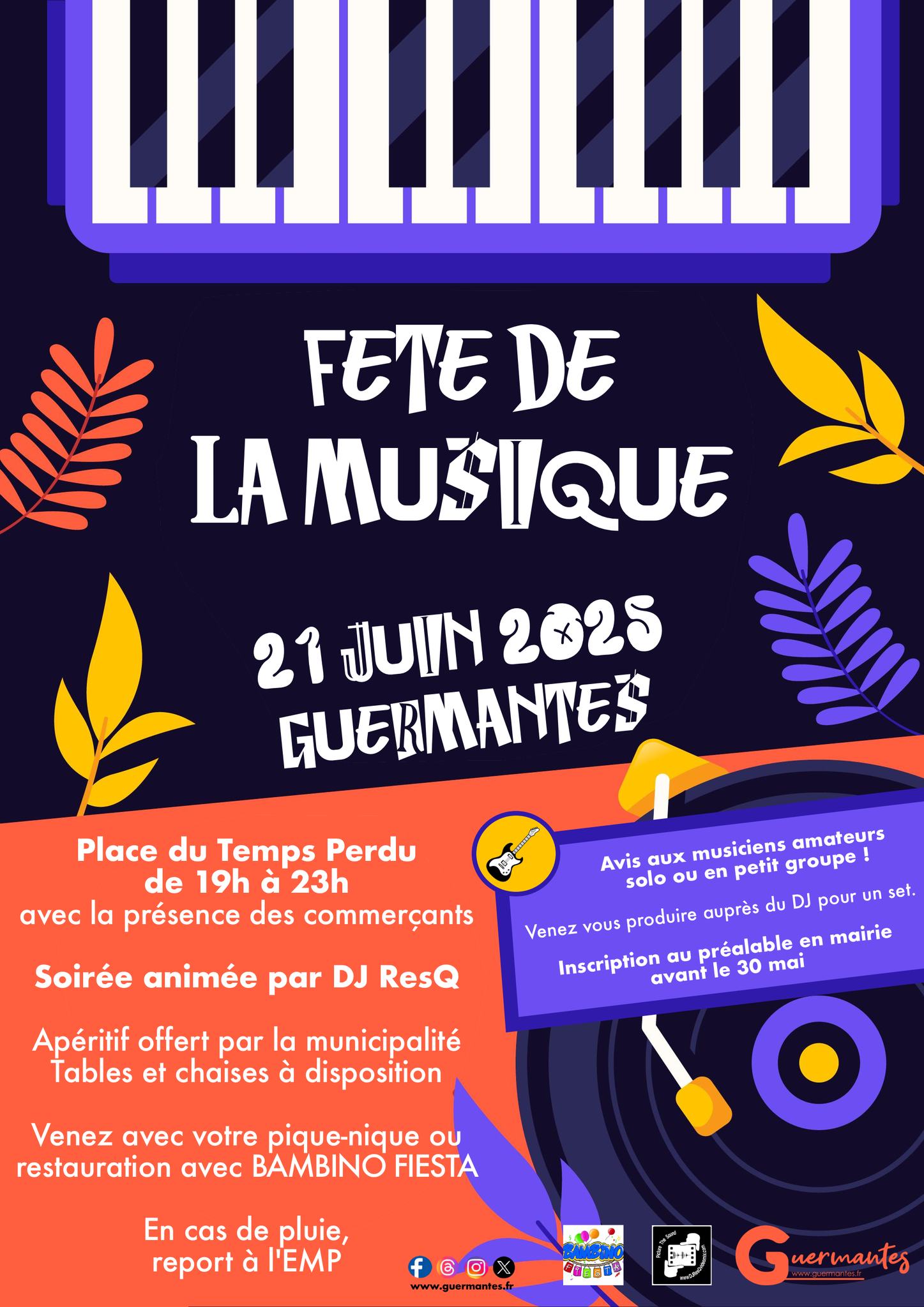 La municipalité de Guermantes organise une nouvelle édition de sa fête de la musique le samedi 21 juin 2025 de 19h à 23h sur la place du Temps Perdu.