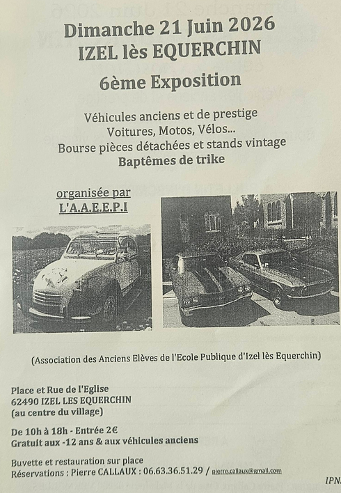 6ème Exposition-Bourse d’échanges de Véhicules Anciens à Izel-lès-Equerchin au sud-est de Lens.