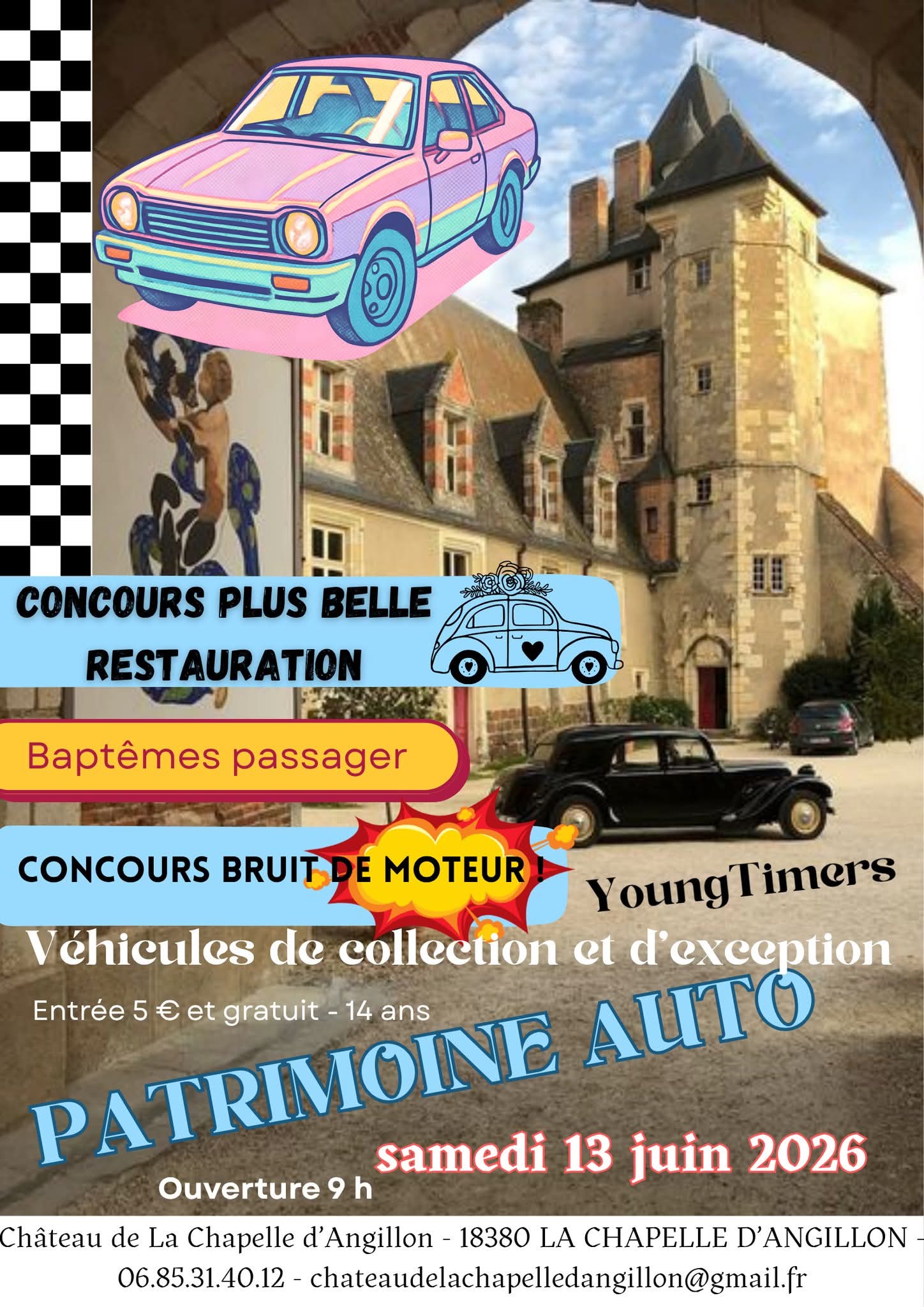 Nous avons le plaisir de vous donner rendez-vous au château de La Chapelle d’Angillon pour une journée placée sous le signe de la passion automobile et du patrimoine.