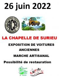 Exposition de voitures anciennes et marché artisannal. Possibilité de restauration sur place. Un café offert à chaque exposant.