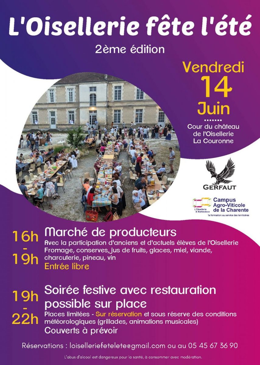 L’exploitation de l’Oisellerie organise le vendredi 14 juin prochain, dans la cour du château de l’Oisellerie à La Couronne, un marché de producteurs suivi d’une soirée festive.