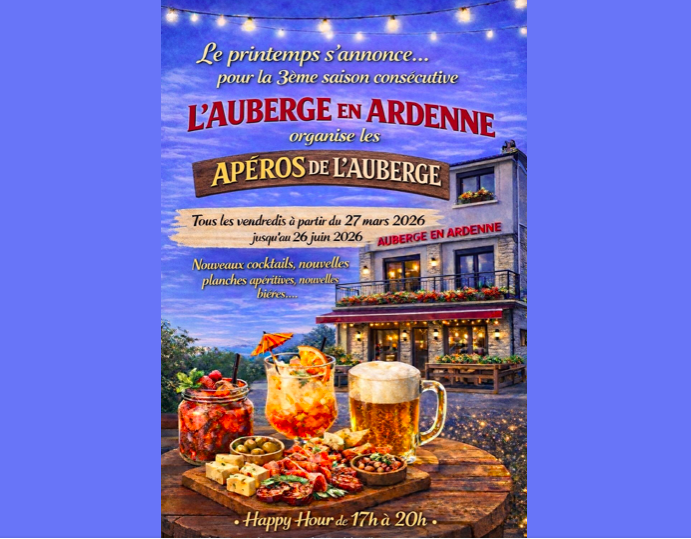 à partir du 27 mars, les "Aperos de l'Auberge" reviennent en force pour la 3e saison consécutive.... ! Qu'on se le dise...