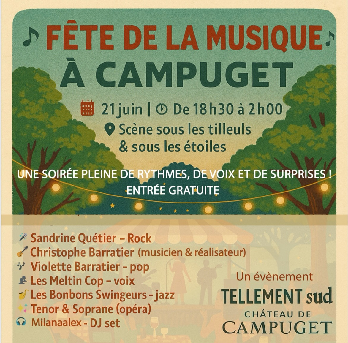 Ce 21 Juin 2025, l'association Tellement Sud vous invite a une soirée pleine de rythmes, de voix et de surprises !