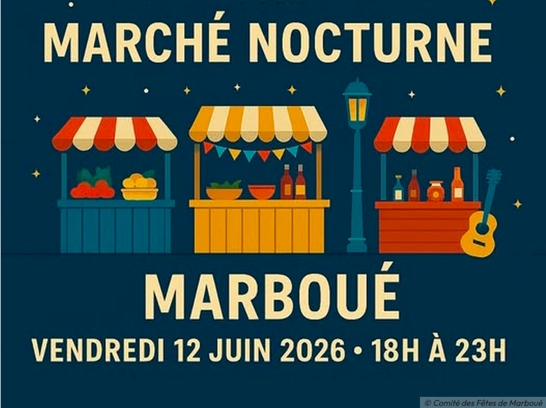 Le Comité des Fêtes et l’Association des Parents d’Élèves de Marboué vous invitent à leur Marché Nocturne le vendredi 12 juin 2026.