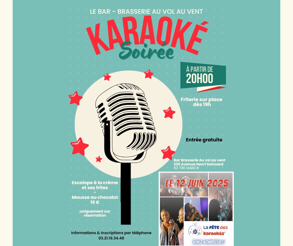 Envie de partager vos talents de chanteur, de passer un moment convivial, ou tout simplement de profiter d’un bon repas et de la musique ? Venez nous rejoindre pour une soirée unique placée sous le signe de la joie et de la musique !