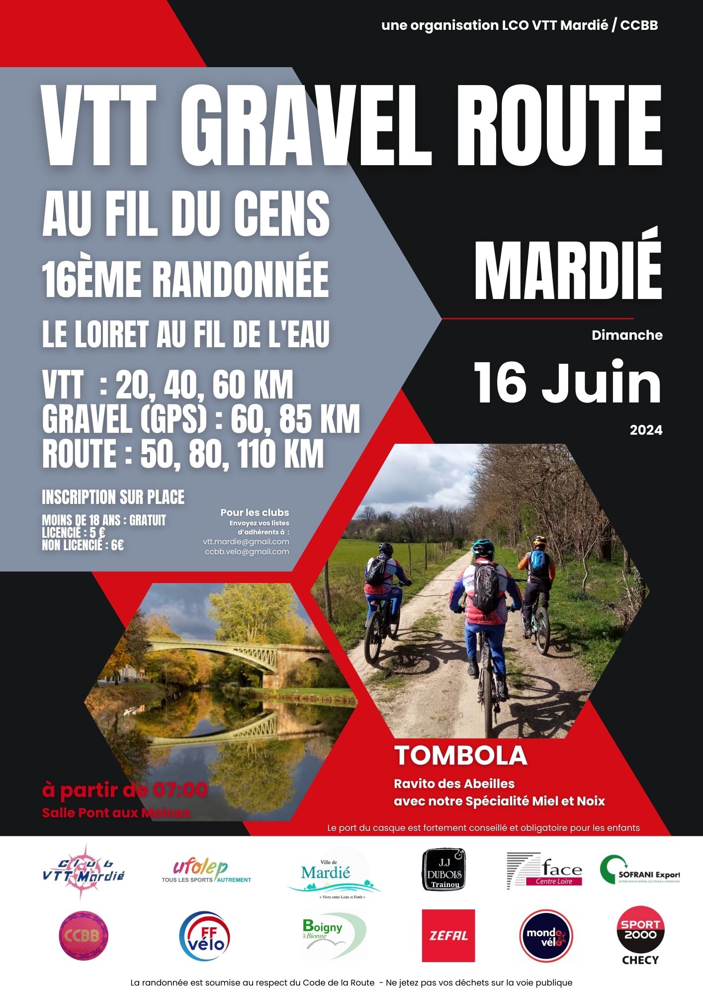 Nous reconduisons l'association LCO VTT Mardié - CCBB afin d'allier toutes nos compétences pour vous offrir des tracés appréciés et de qualité, accompagnés de ravitaillements copieux.