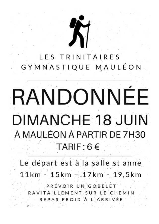 Les Trinitaires Gymnastique de Mauléon vous propose une randonnée, avec plusieurs circuits, de 11 à 19. 5km.
