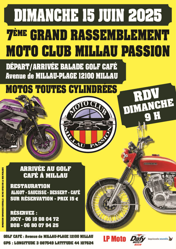 Le Moto Club Millau Passion organise son 7ème rassemblement annuel, ouvert à toutes les motos, toutes cylindrées confondues, dans une ambiance conviviale au cœur de l’Aveyron.