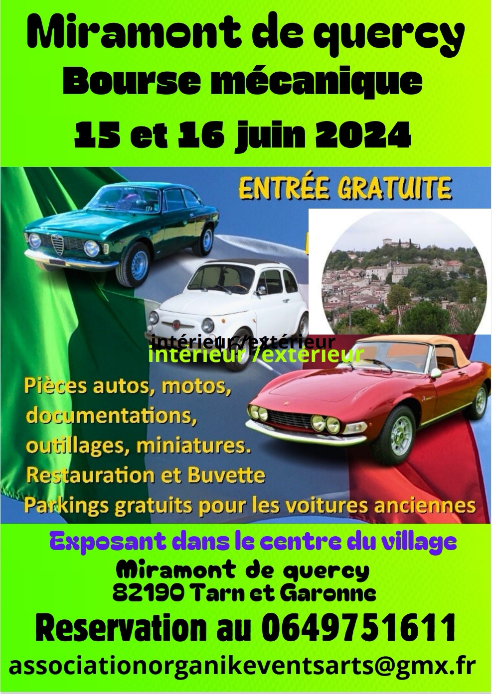 Bourse d'échange mécanique, piece auto moto motoculture,miniature etc.. Exposition de véhicules anciens, du samedi 15 au dimanche 16 juin 2024 intérieur /extérieur dans les rue du village.