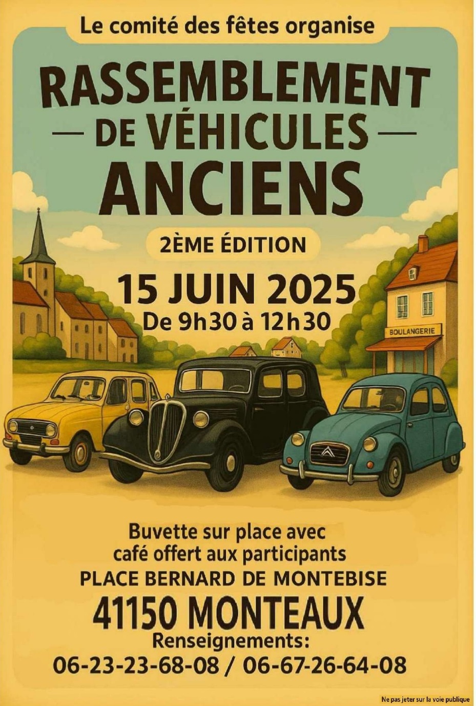 Le Comité des Fêtes de Monteaux vous invite à participer à son rassemblement de véhicules anciens le dimanche 15 juin 2025.
