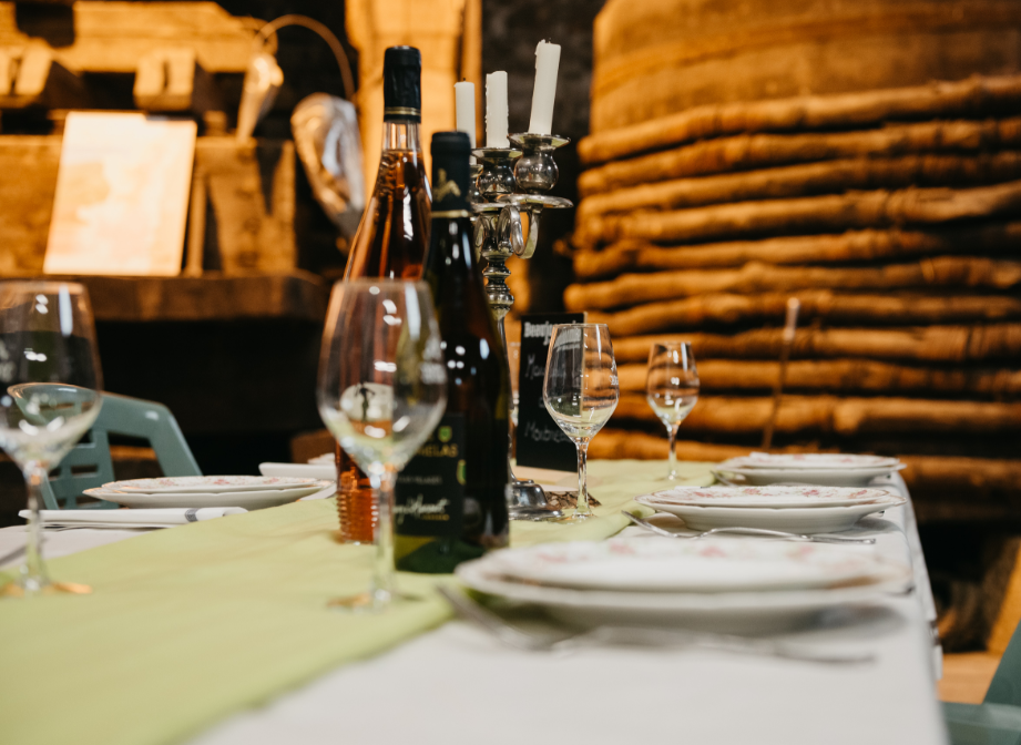 Après une dégustation vin et fromage à l'aveugle, vous prendrez place dans notre Grand cuvage, sous les solives datant de 1842.