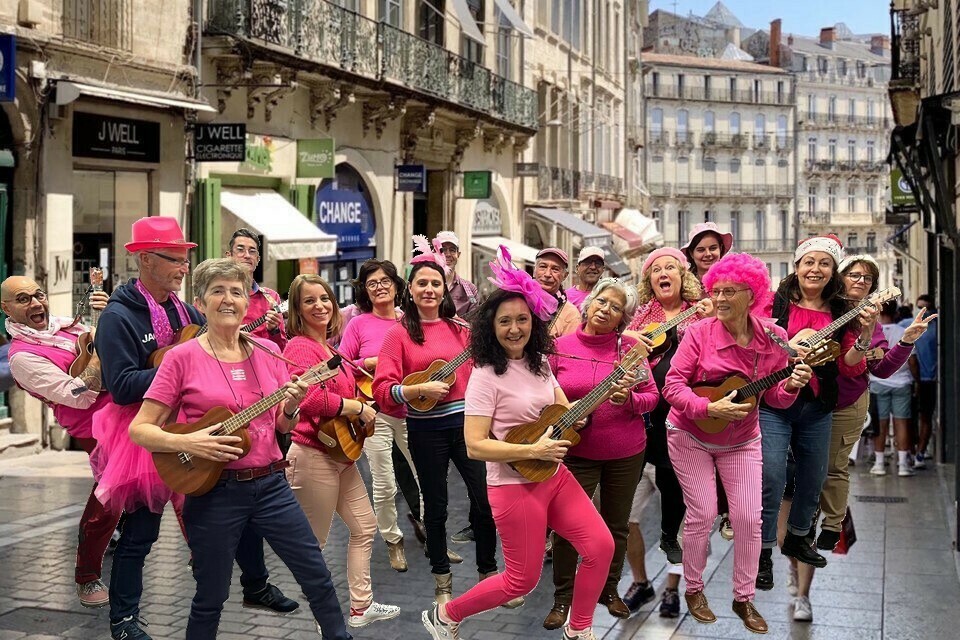 Les Flamingos du Ukulélé Club de Montpellier pousseront joyeusement la chansonnetee-lélé avec leur petit instrument de prédilection, le ukulélé, dans les rues de l'Ecusson à partir de 17h30.