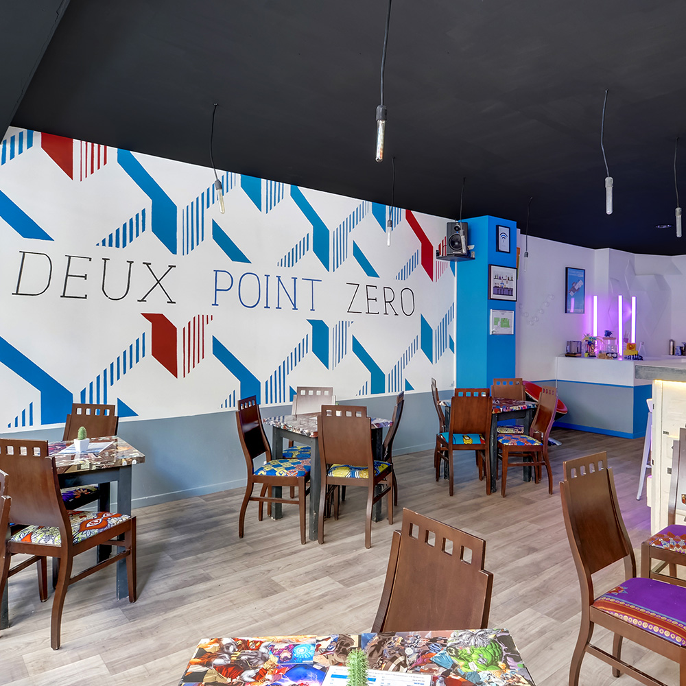 Le Deux Point Zéro c’est tout d’abord, deux mondes, deux cultures, qui s’entrechoquent, se mélangent pour créer un lieu convivial et atypique. Le Deux Point Zéro, c'est des cocktails créatifs, des jeux, des blindtests, une appli interactive et des soirées entre amis au croisement des boulevards de Sébastopol et Saint-Martin.