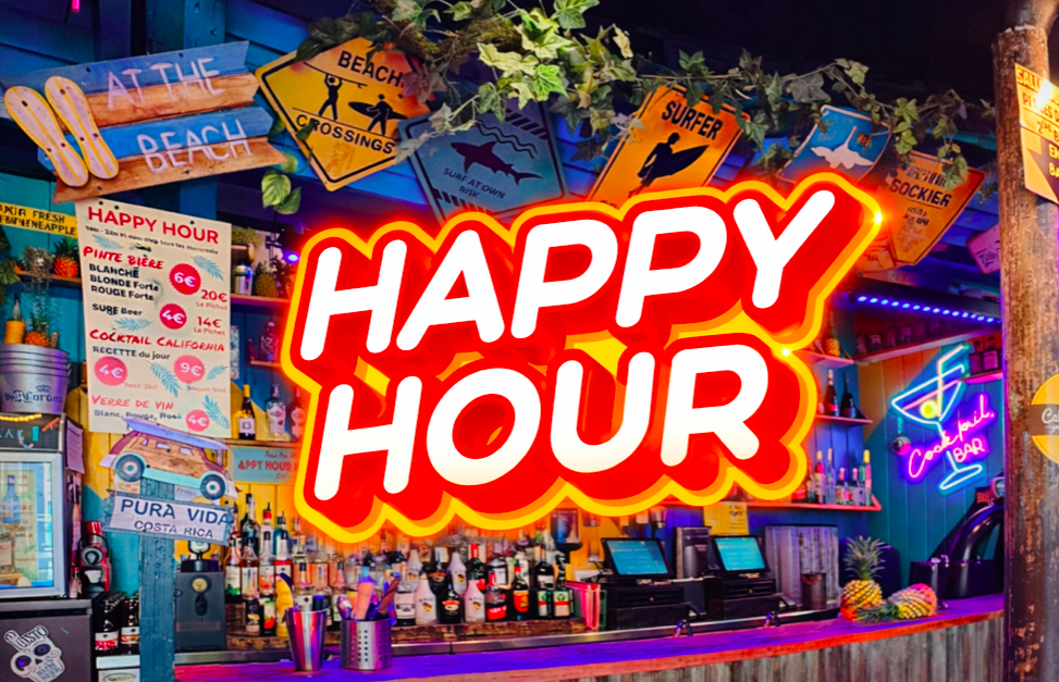 Plonge dans une ambiance californienne en plein cœur de Paris avec cet afterwork festif au California Avenue. Dès 18h, profite d’un moment convivial en mode apéro avec un Happy Hour attractif : bières, cocktails et une large sélection de mojitos aux parfums variés.