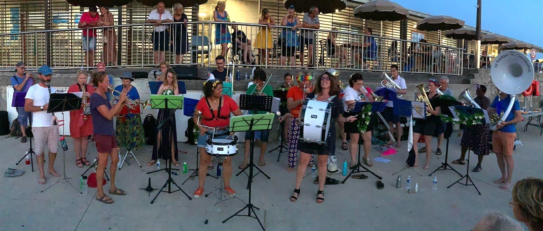 Venez vibrer au son des cuivres et des percussions de la Fanfare Clandestine, dans d'un répertoire varié allant du jazz à la soul, des musiques de films au rock, en passant par le reggae et la musique funk.
