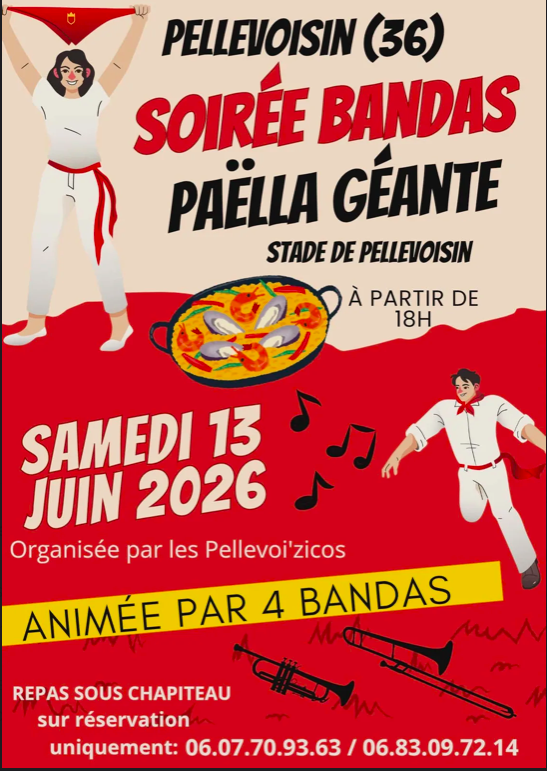 Les Pellevoi’zicos organisent une soirée festive autour des bandas à Pellevoisin. La soirée débutera par un défilé dans la commune, avant de se poursuivre au stade avec des animations musicales.
