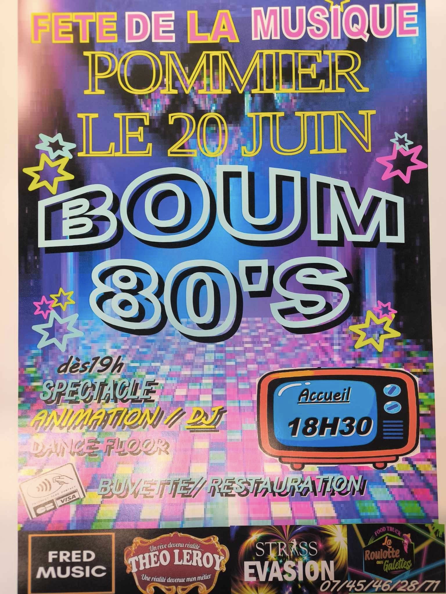 Le vendredi 20 juin 2025, la commune de Pommier vous invite à une soirée exceptionnelle pour célébrer la Fête de la Musique avec une boum géante spéciale années 80.