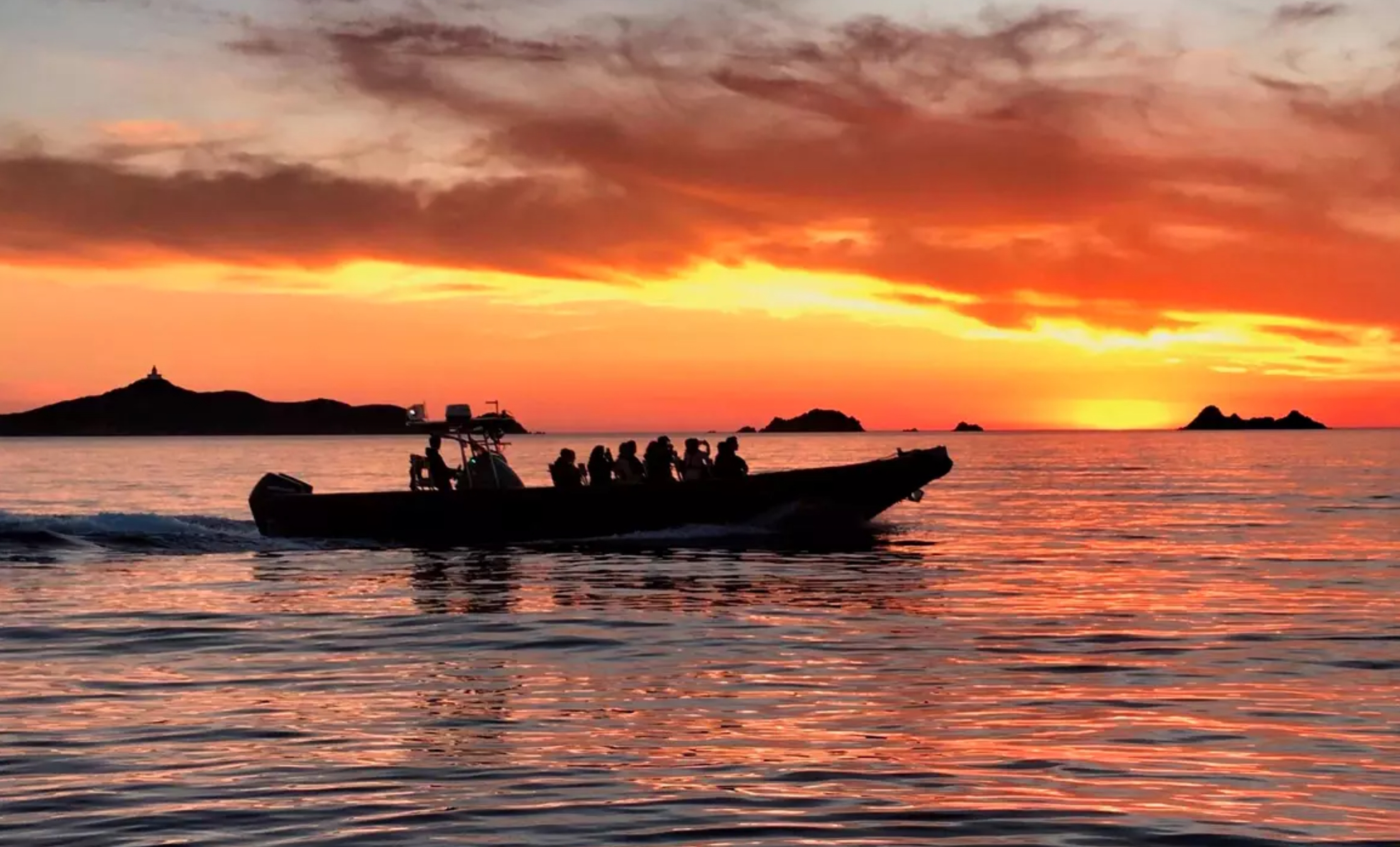 SUNSET CALANQUES DE PIANA BAIGNADE VERRE APERITIF en SEMI-RIGIDE