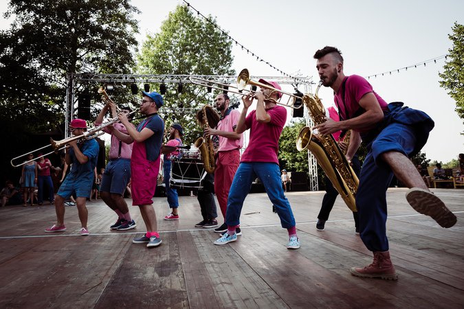 Le Festival Jazz360 2025 accueille Pierres & fils, fanfare fantasque & distinguée. Photographie : tous droits réservés