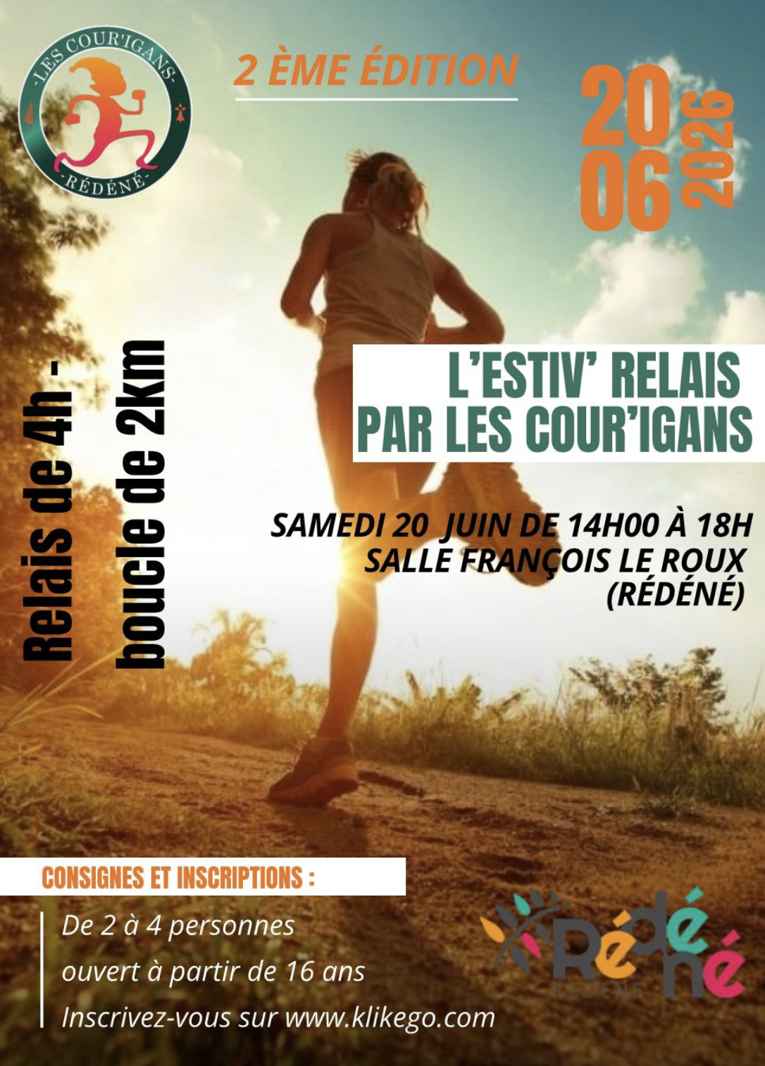 Les Cour'igans de Rédéné organisent la 2ème édition de l'Estiv' relais le 20 juin 2026 de 14h à 18h.