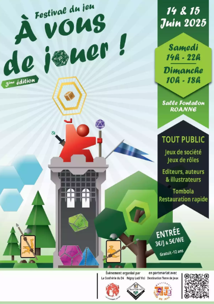 Les associations Regny Ludi Vici et La Confrérie du Dé, en partenariat avec la boutique ludique Destination Terre de Jeux vous invite à la 3ème Édition du festival de jeux de société : "A vous de jouer" !