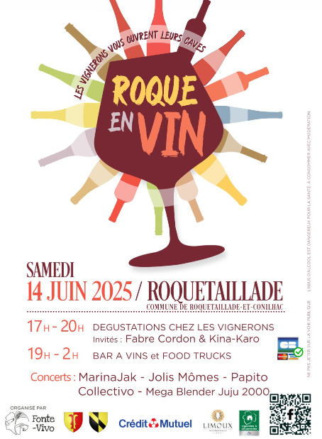 Au programme de Roque en Vin : une dégustation en déambulant dans les rues du superbe village de Roquetaillade, de caves en caves, à la découverte d’une quinzaine de domaines issus de cet exceptionnel terroir d'altitude.