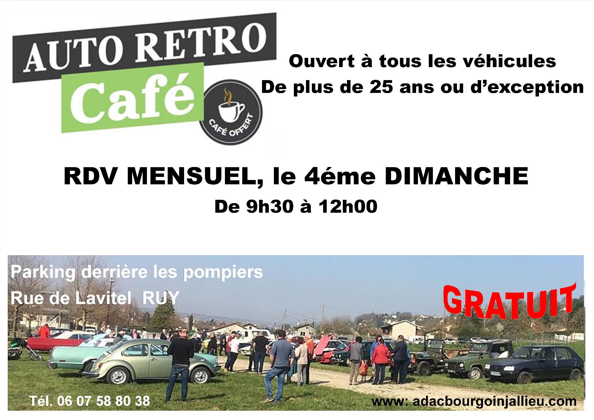 Tous les 4e dimanche de chaque mois de 9h à 12h l'ADAC organise gratuitement cette réunion. Tous véhicules de plus de 25 ans d'âge et d'exception.