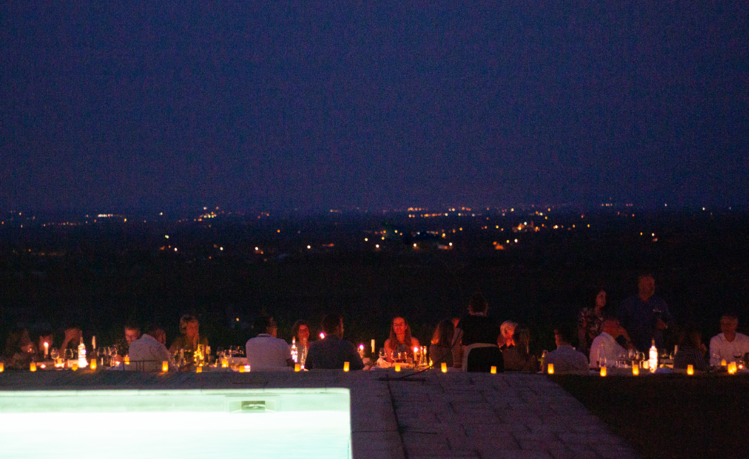Retrouvons nous à Ma Chambre à Saint-Amour, un lieu magnifique avec une vue imprenable sur le Beaujolais et au delà (on y voit parfois le Mont-Blanc). Si toutefois, la météo était capricieuse, le dîner aura lieu à une centaine de mètres de là, dans le magnifique Chais du Domaine de la Pirolette.