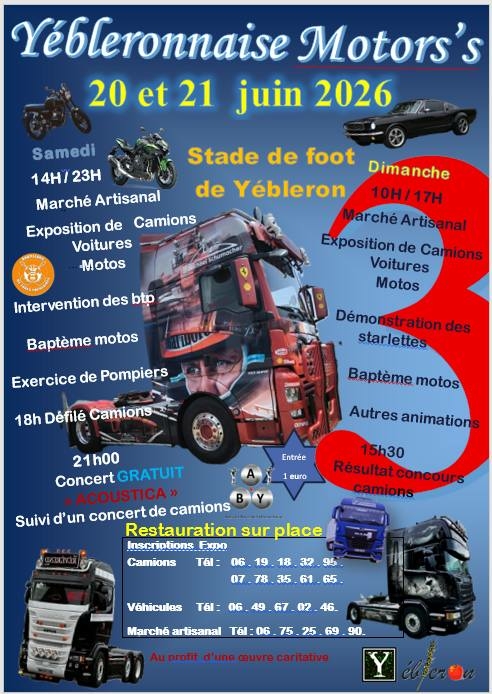 La Yébléronnaise Motors’s est un événement convivial dédié aux passionnés de véhicules motorisés, qui se déroule les 20 et 21 juin 2026 au stade de foot de Yébleron.