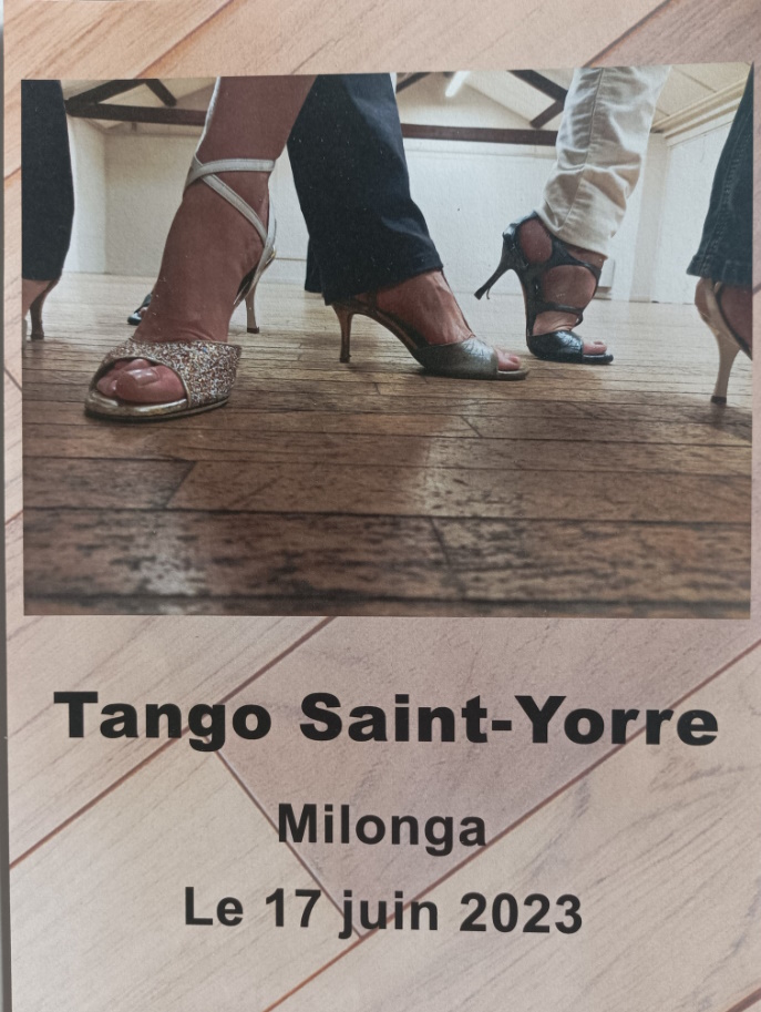 L' association Tango Saint yorre , organise le 17 juin 2023 une milonga , a la salle des fêtes , 5 rue Nicolas larbaud 03270.